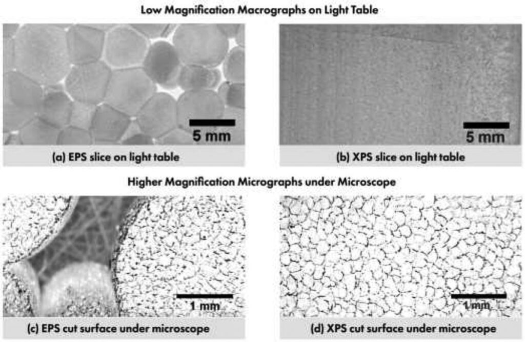 Table 1 shows the density and calculated total porosity of various types of RCPS along with the compressive strengths as given in ASTM C578 Table 1. As density increases, the porosity decreases; however, that does not explain the strength differences between EPS types and XPS types of similar porosity.